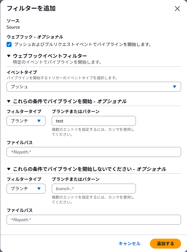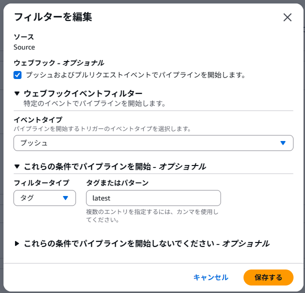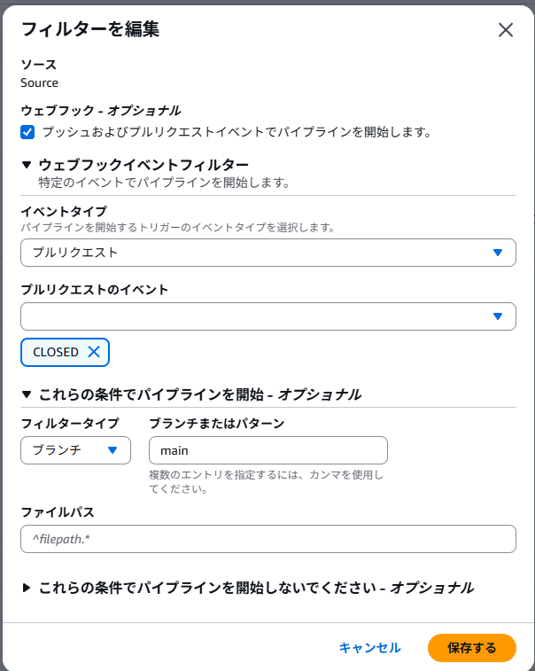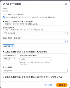 ・mainブランチへのプルリクエストがクローズされたタイミングでコードパイプラインが実行されるようにする